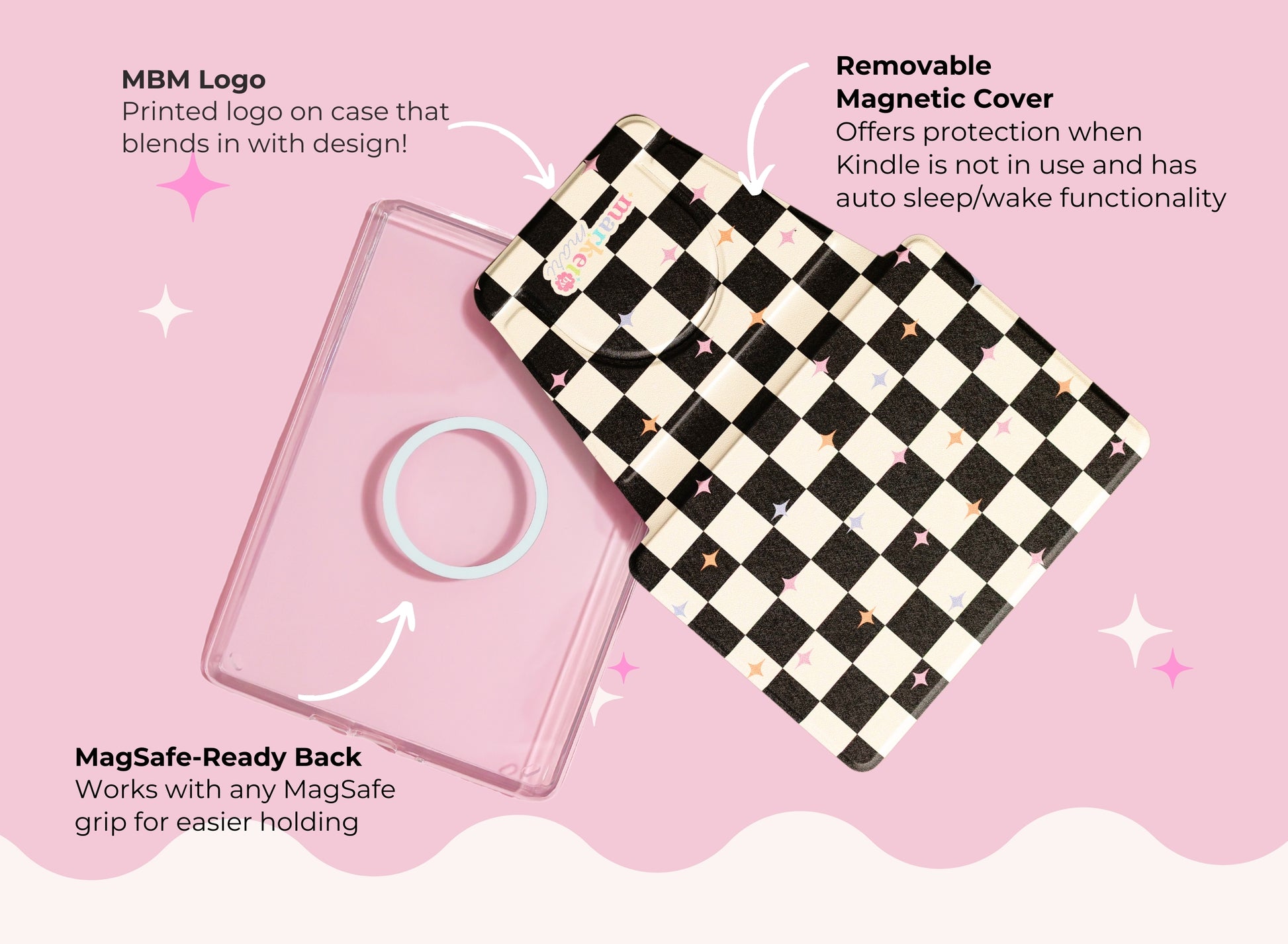Artwork is printed on just the front and features a clear back so you can still decorate your Kindle with stickers or inserts. The case has automatic wake-up and sleep functionality.